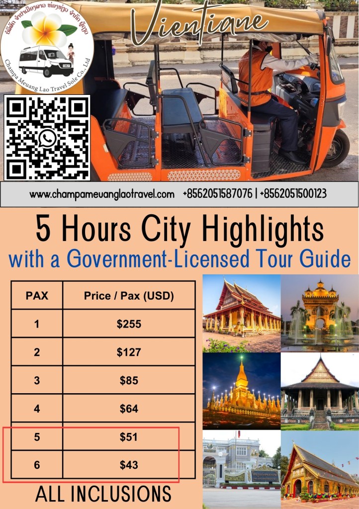 Discover the cultural heart of Laos on this private half-day city tour of Vientiane. Perfect for first-time visitors, short-stay travelers, or anyone who wants to experience the capital’s most iconic landmarks in comfort and style.